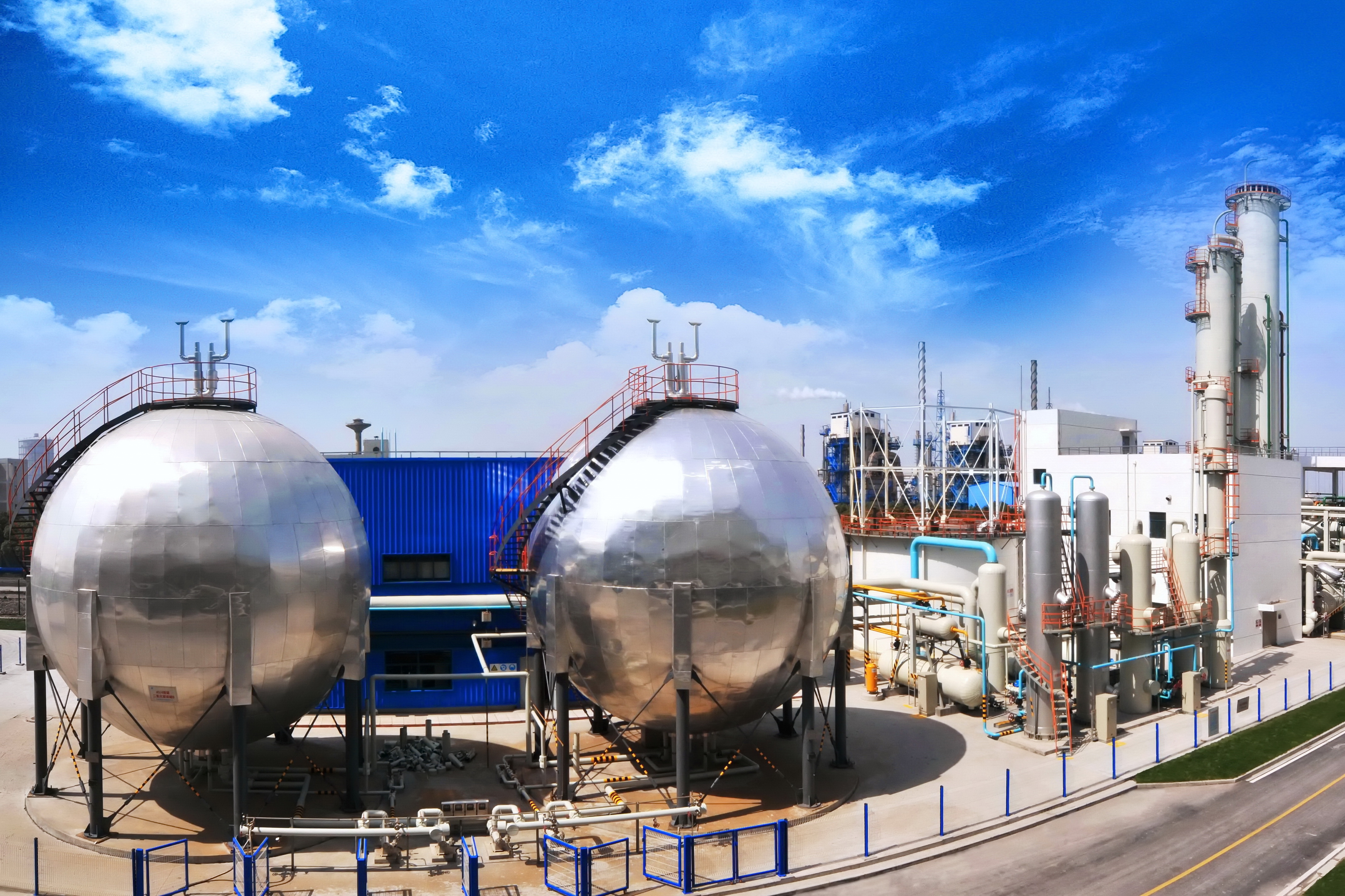 長江浩蕩東入海,在江海匯處,華能上海石洞口第二電廠矗立著世界首個12萬噸級燃煤電廠碳捕集裝置。兩座巨大的銀色球形儲罐在藍天白云下熠熠生輝,如堅毅衛士,見證著一段不凡的工程傳奇。