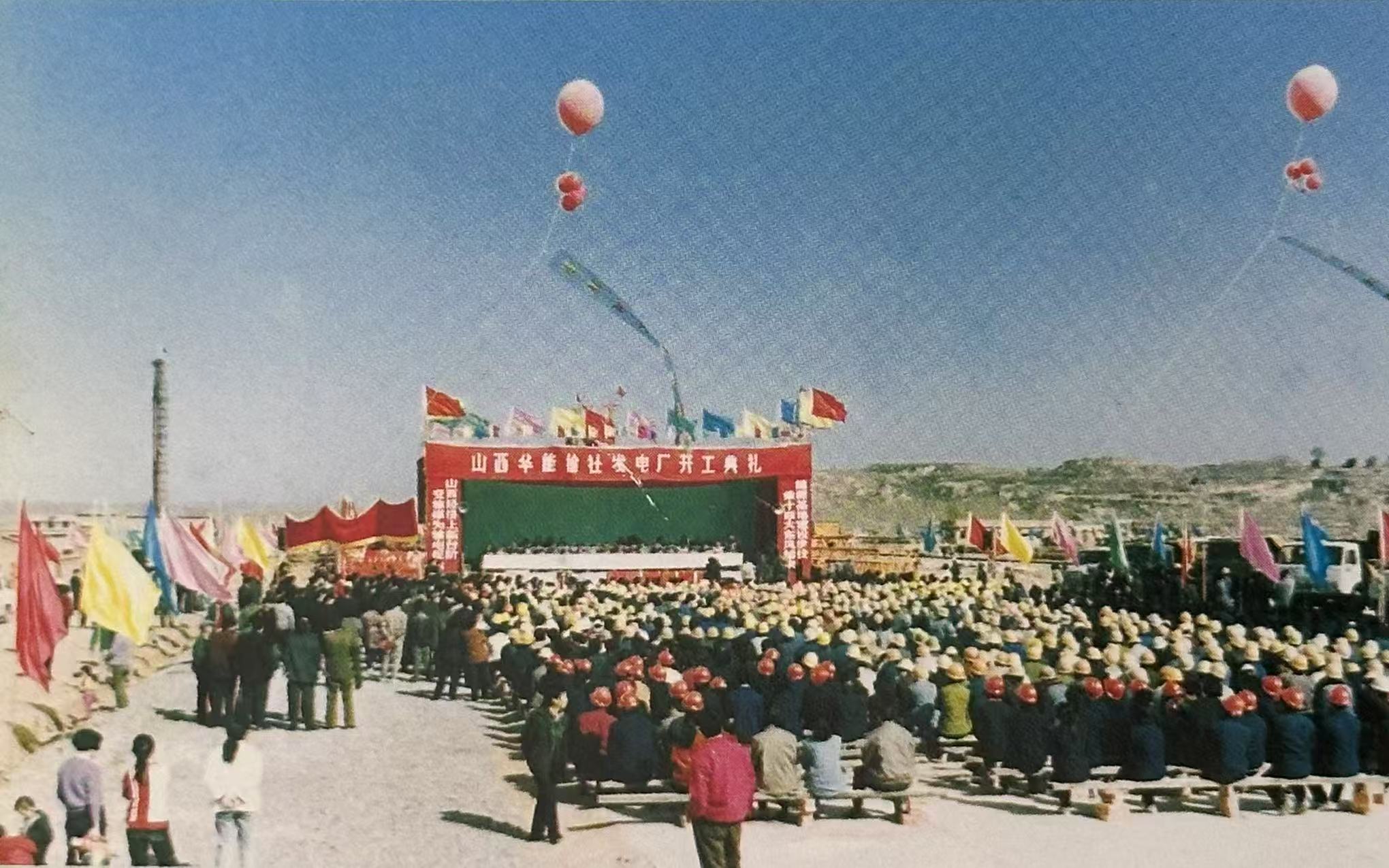 泛黃照片里的時光褶皺中,一段關于三晉大地能源突圍的奮斗敘事徐徐展開。1992年山西華能榆社電廠開工典禮的現場影像里,頭戴安全帽的建設者們坐在用磚頭壘起、木板搭就的“長條凳”上,遠處黃土坡上攢動的村民身影,共同構成了一幅鐫刻著希望與汗水的時代剪影——他們目睹的不僅是一座電廠的誕生,更是一個貧困縣與能源革命機遇的第一次握手。